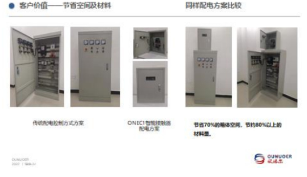 比起現(xiàn)在的傳統(tǒng)型配電保護(hù)機(jī)柜,歐諾爾多功能接觸器的投資成本低。